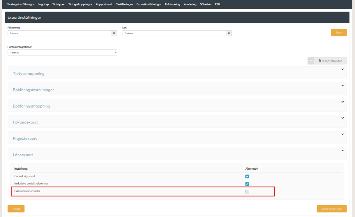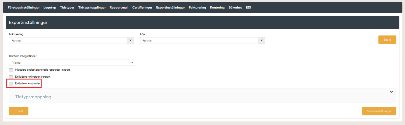 Exkludera kostnader till Fortnox & Visma